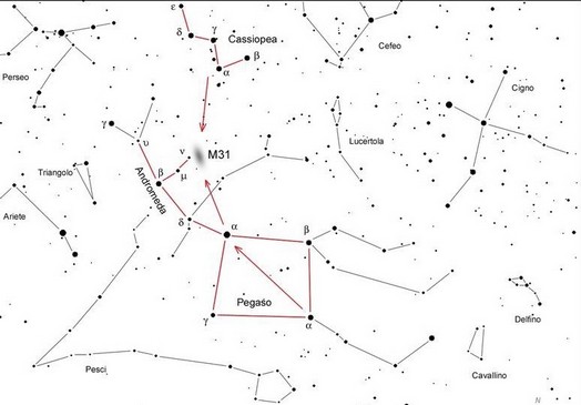 costellazione di Andromeda che giace tra Pegaso, Perseo e Cassiopea. Poi,