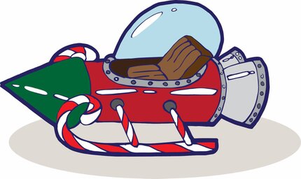 punto di rovesciarsi finché Babbo Natale preme il tasto salita e, in un lampo, raggiunge lo spazio buio,