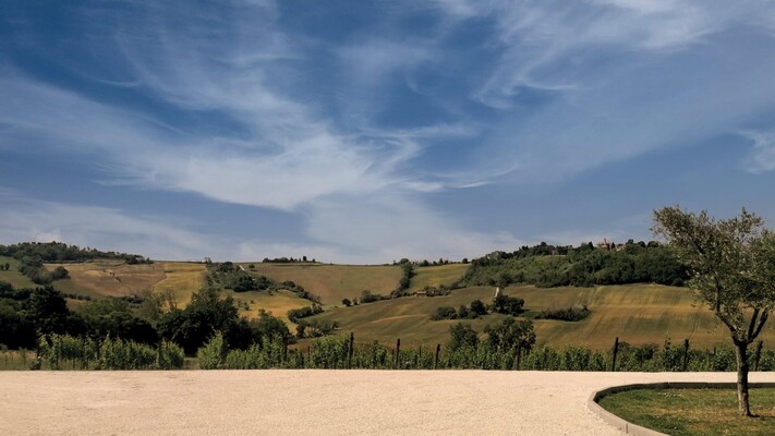una tenuta nelle Marche, nelle colline di San Paolo di Jesi, cioè nel cuore