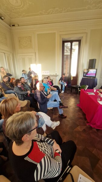 Domenica pomeriggio alle ore 15,30 la Sala del Conte di Villa Mazzotti era gremita di persone per assistere all’evento.