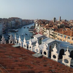 Nel mio secondo giorno a Venezia volevo concentrare la mia visita sulla zona circostante il Ponte di Rialto, così, di mattina abbastanza presto, ho deciso di raggiungere tale luogo in vaporetto, approfittando anche della tranquillità del momento storico, per godermi il paesaggio.