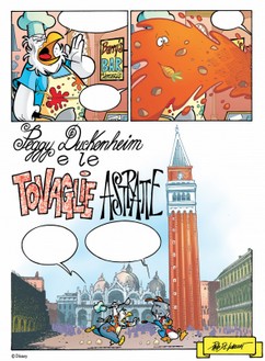 La vita di Peggy Guggenheim è stata celebrata in una storia Disney, edita nel 2012, su Topolino chiamata "Peggy Duckenheim e le tovaglie astratte" (testi di Roberto Gagnor, disegni di Paolo de Lorenzi).