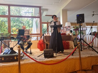 Nella splendida "sala degli specchi" dell'Hotel Conca D'Oro di Salò, davanti ad un pubblico numeroso (poco meno di 80 presenti), la serata è iniziata poco dopo le 18,00 quando Aurelio Armio ha dato il via allo spettacolo presentando il monologo "Migdal Magdalene", scritto appositamente per l'evento da Silvia Luscia, accompagnata dalle variazioni musicali del maestro Giuseppe Faletti.