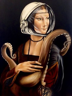 utilizzando le sue creazioni artistiche. Insegna pittura a grandi e piccini.