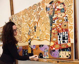 Copie d’autore di capolavori della pittura, e poi la sua pittura. Cosa unisce