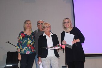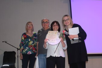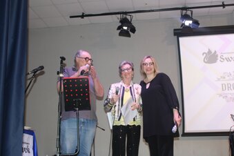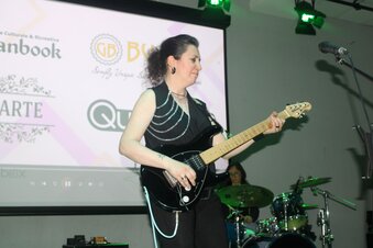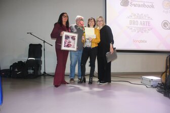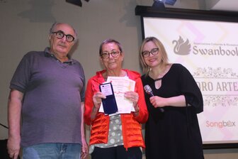 Anche per il premio successivo c’è stato un passaggio di consegne. Già perché il “Premio Donna Territorio & Cultura” per la sezione “Arte, Musica & Spettacolo” a consegnare il premio alla disegnatrice, pittrice e musicista di Pavia Annalisa Platè è stata Elisabetta Filippini, vincitrice del premio nel 2024.